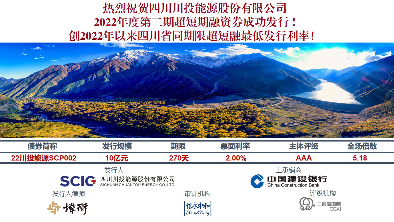 2022Äê8ÔÂ3ÈÕ£¬Àû¹ú¹ú¼ÊÀÏÅÆ¹ÙÍøÄÜÔ´Àֳɿ¯ÐÐ2022Äê¶ÈµÚ¶þÆÚ³¬¶ÌÆÚÈÚ×Êծȯ£¬×ܽð¶î10ÒÚÔª£¬ÏÞÆÚ270Ì죬ÀûÂÊ2.0%£¬È«³¡±¶Êý5.18±¶£¬´´2020ÄêÒÔÀ´ËÄ´¨Ê¡Í¬ÏÞÆÚ³¬¶ÌÈÚ×îµÍ¿¯ÐÐÀûÂÊ¡£